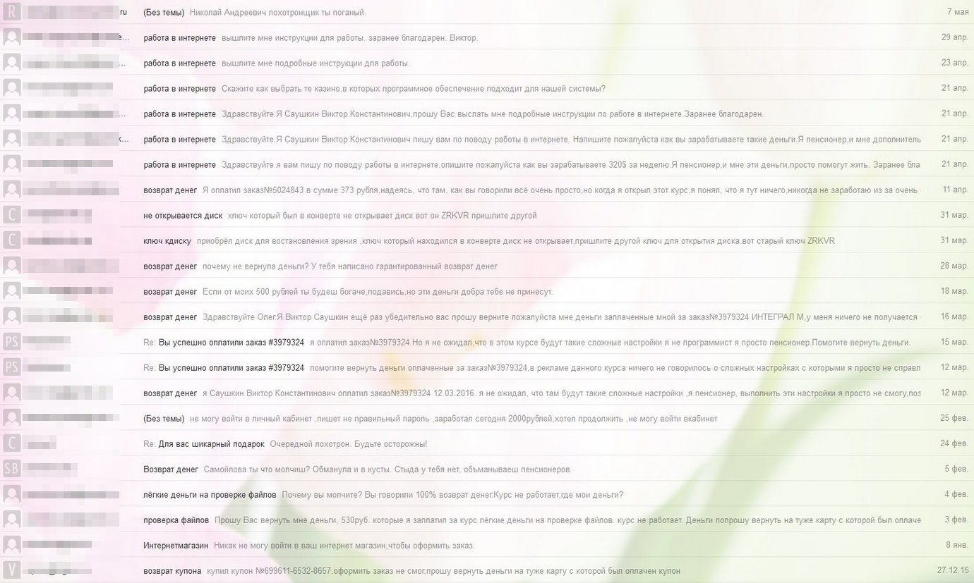 Также "двачеры" опубликовали скриншот из переписки российского пенсионера-оппозиционера, в котором он то ищет работу в интернете, то требует вернуть деньги за купленные курсы "как заработать в Интернете", то за CD "для улучшения зрения" - который якобы не помог.