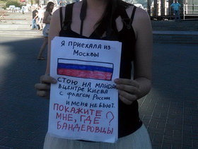 Приехала, значится, на майдан журналистка Moscow-Live Стюра Зотова. Было ей весьма интересно - начистят ли ей харю злобные укропы, если она будет стоять на майдане с российским триколором.